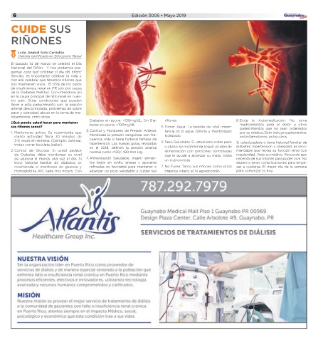 sus riñones sanos? 5. Tomar Agua: La bebida de vital impor- padecimientos que no sean ordenados