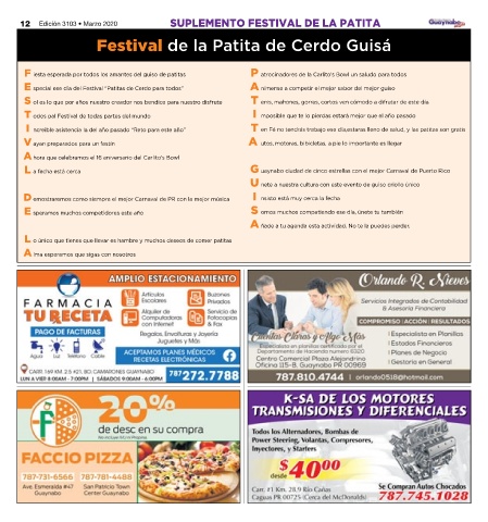 12 Edición 3103 • Marzo 2020 SUPLEMENTO FESTIVAL DE LA PATITA